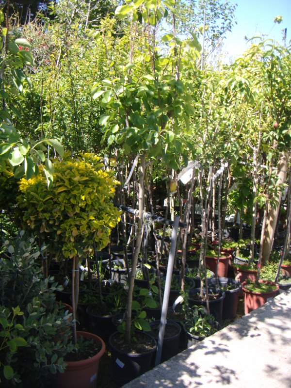 Tenemos gran cantidad de plantas de exterior dependiendo de la estación. Además de todo tipo de arboles de sombra como, sauces, chopos..., tenemos un gran surtido de flores decorativas, desde los típicos rosales y bougambillas, hasta una exótica bromelia.